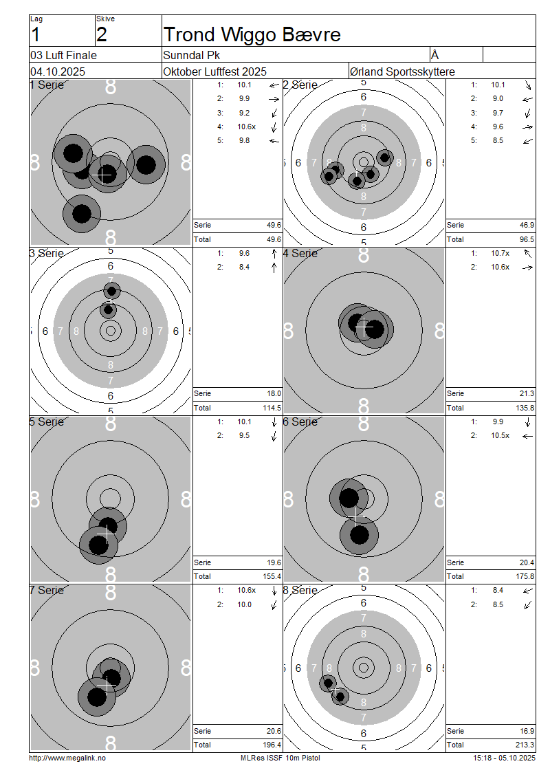 | B | 15 | BÆVRE Trond Wiggo | Sunndal Pk | Å | 49.6 | 46.9 | 18.0 | 21.3 | 19.6 | 20.4 | 20.6 | 16.9 | 213.3 | SO | |||||||||||||||||||||||||||||||||||