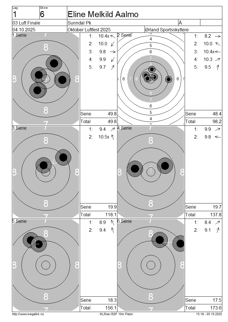 | F | 17 | AALMO Eline Melkild | Sunndal Pk | Å | 49.8 | 48.4 | 19.9 | 19.7 | 18.3 | 17.5 | 173.6 | SO | |||||||||||||||||||||||||||||||||||||