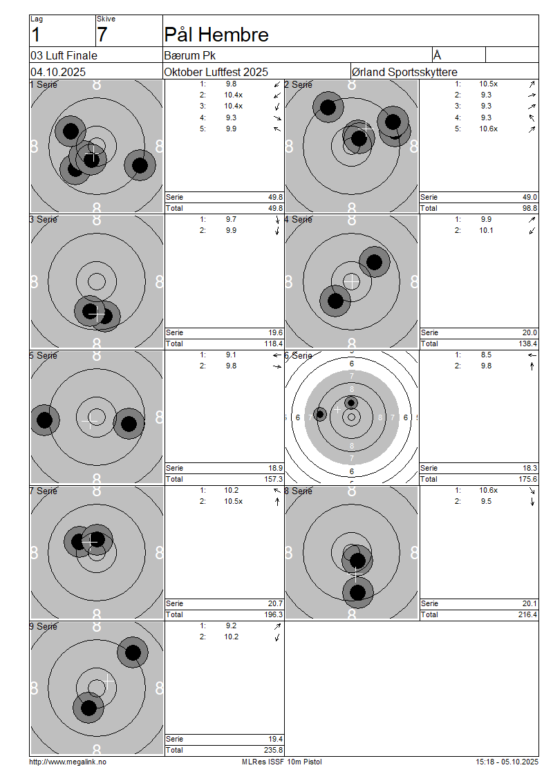 | G | 9 | HEMBRE Pål | Bærum Pk | Å | 49.8 | 49.0 | 19.6 | 20.0 | 18.9 | 18.3 | 20.7 | 20.1 | 19.4 | 235.8 | SO | ||||||||||||||||||||||||||||||||||