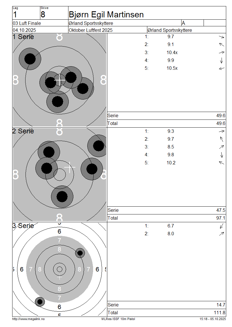 | H | 20 | MARTINSEN Bjørn Egil | Ørland Sportsskyttere | Å | 49.6 | 47.5 | 14.7 | 111.8 | SO | ||||||||||||||||||||||||||||||||||||||||
