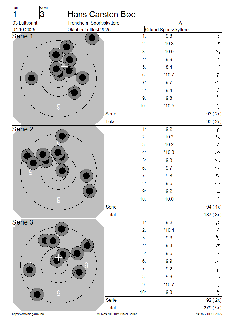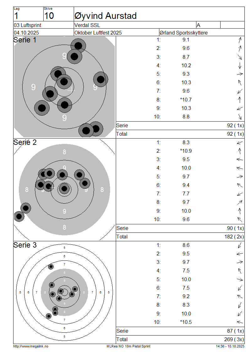 | 10 | 1 | AURSTAD Øyvind | Verdal SSL | A | 92 | 90 | 87 | 269- 3x | |||||||||||||||||||||||||||||||||||||||||