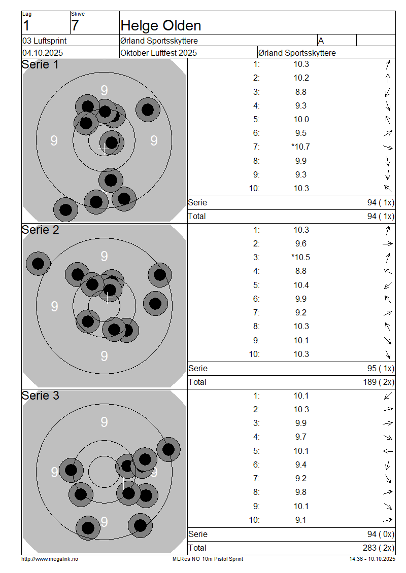 | 7 | 6 | OLDEN Helge | Ørland Sportsskyttere | A | 94 | 95 | 94 | 283- 2x | |||||||||||||||||||||||||||||||||||||||||