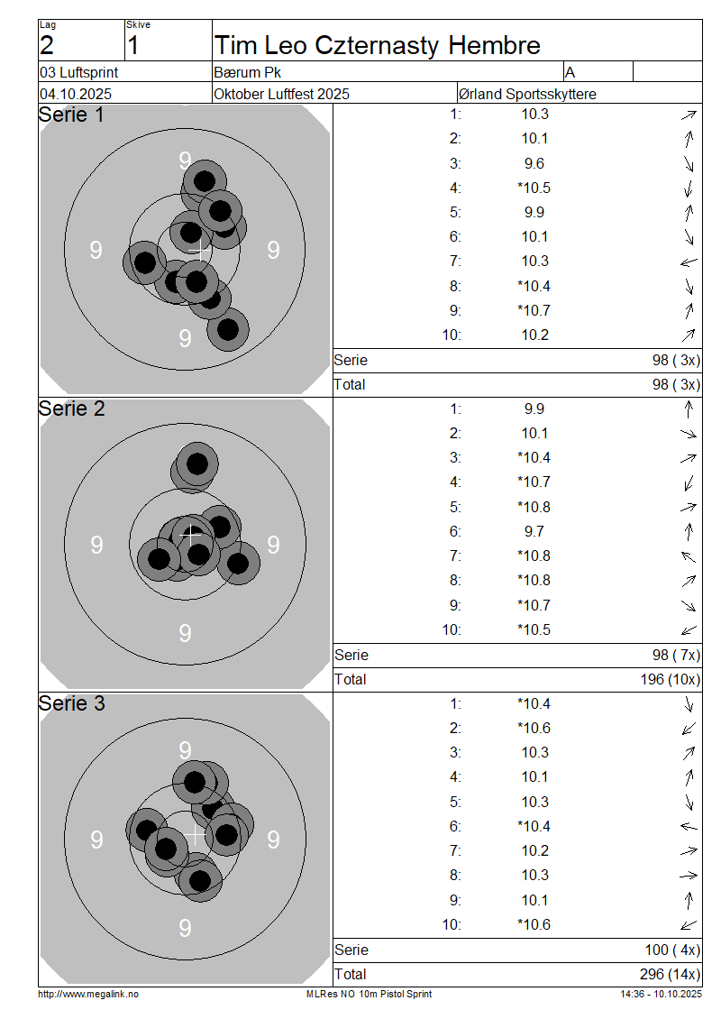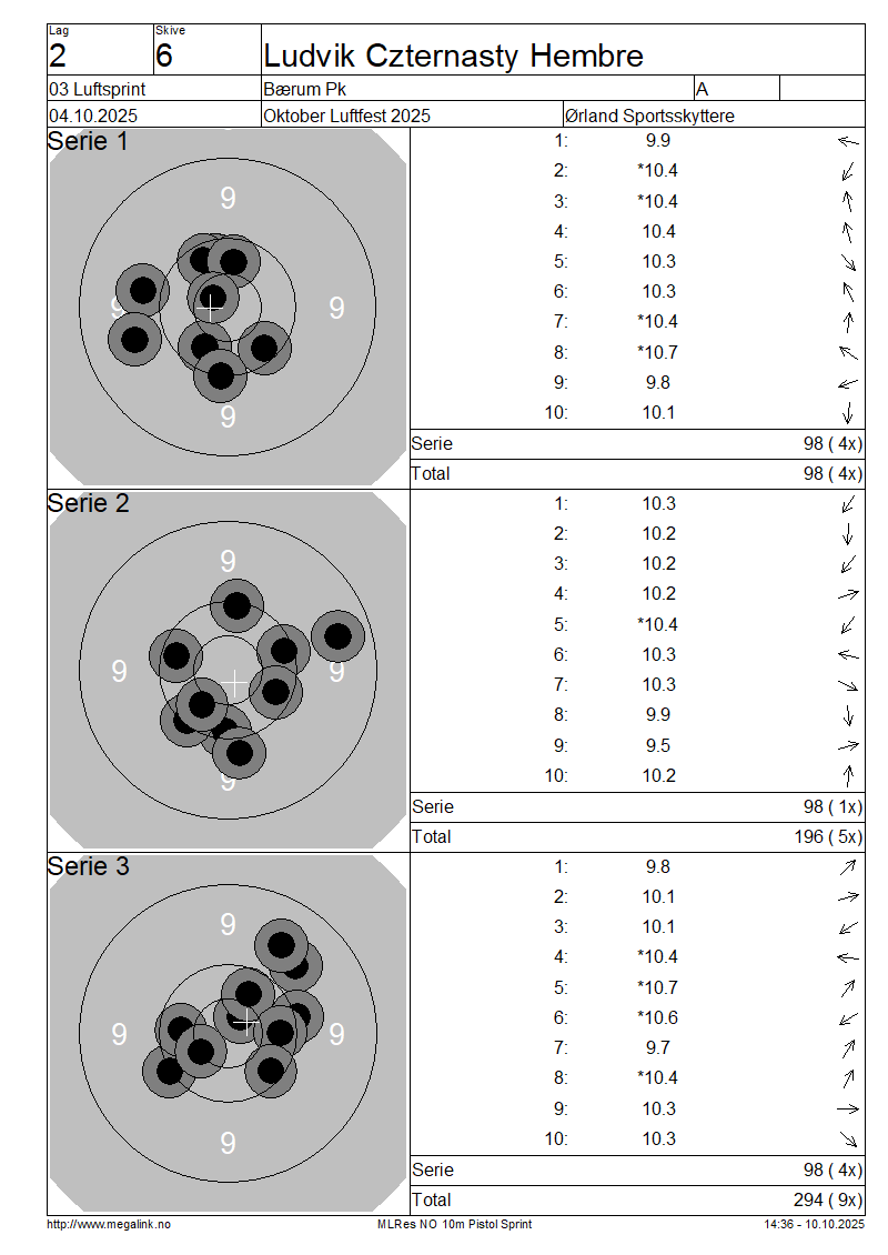 | 6 | 10 | HEMBRE Ludvik Czternasty | Bærum Pk | A | 98 | 98 | 98 | 294- 9x | |||||||||||||||||||||||||||||||||||||||||