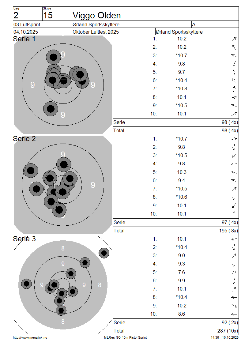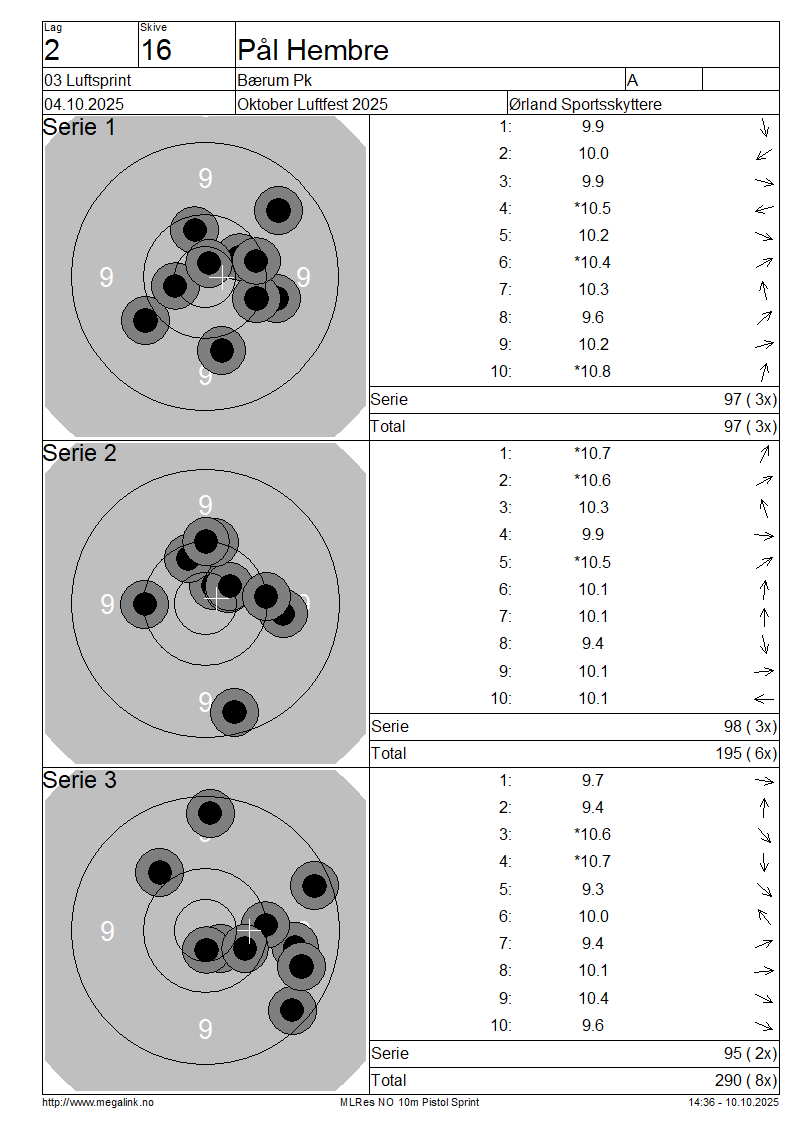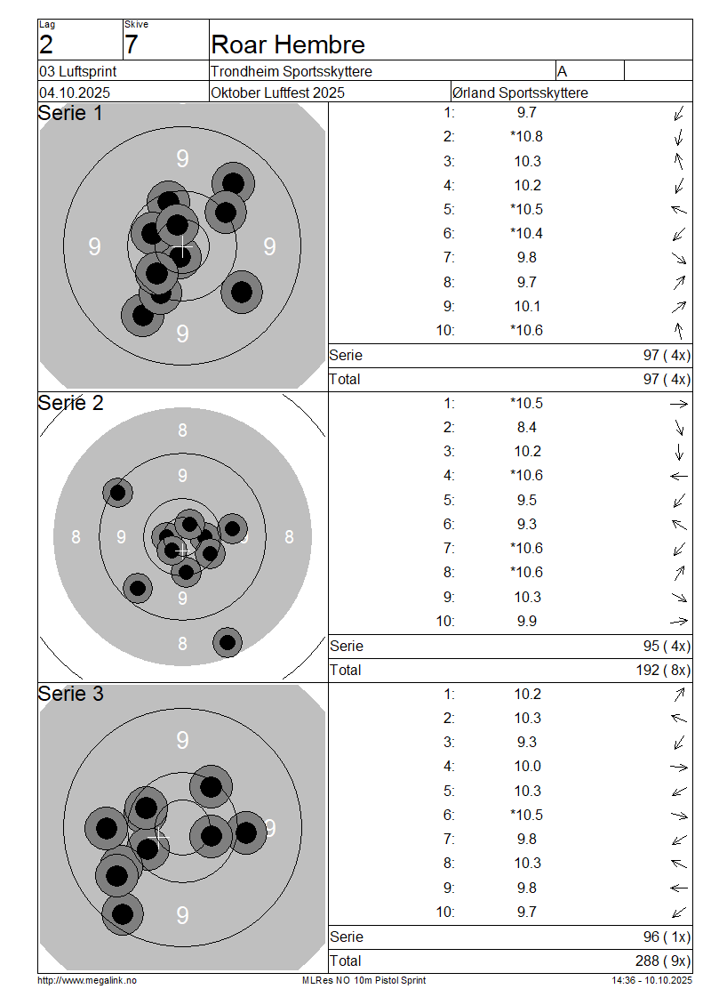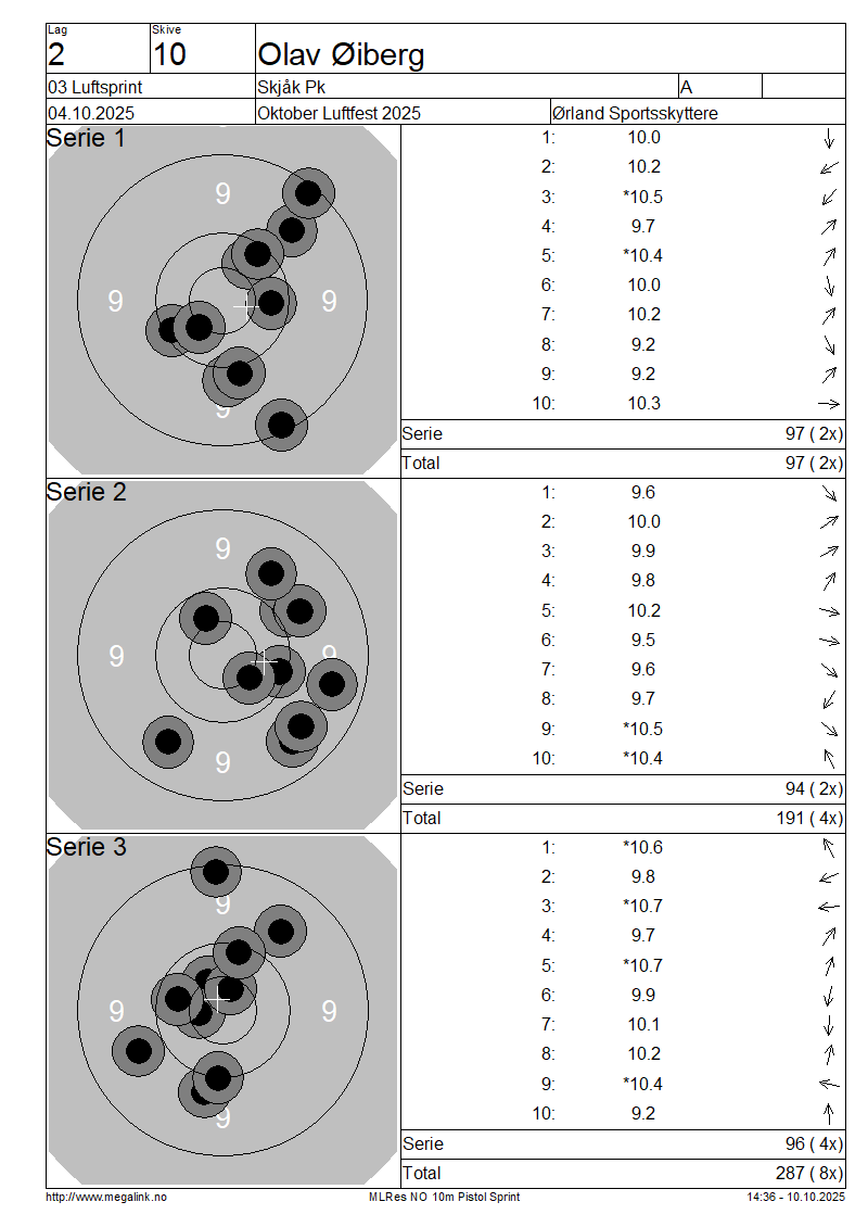 | 10 | 2 | ØIBERG Olav | Skjåk Pk | A | 97 | 94 | 96 | 287- 8x | |||||||||||||||||||||||||||||||||||||||||