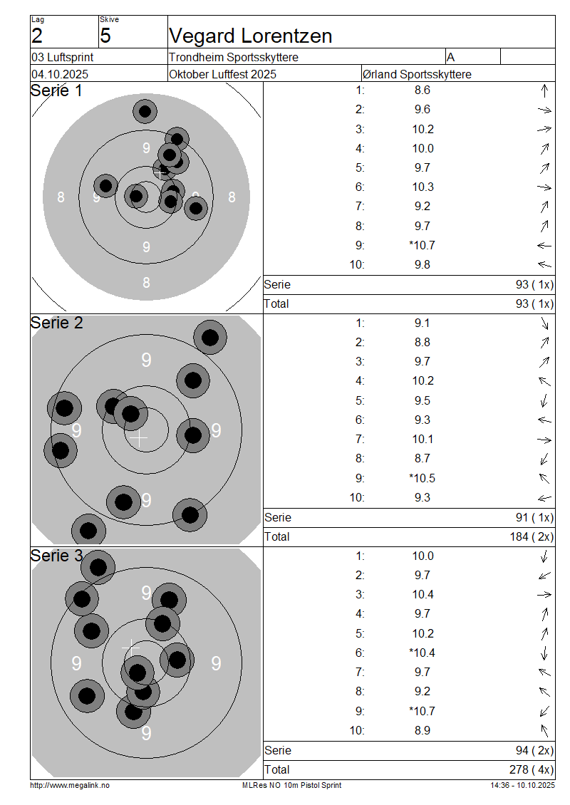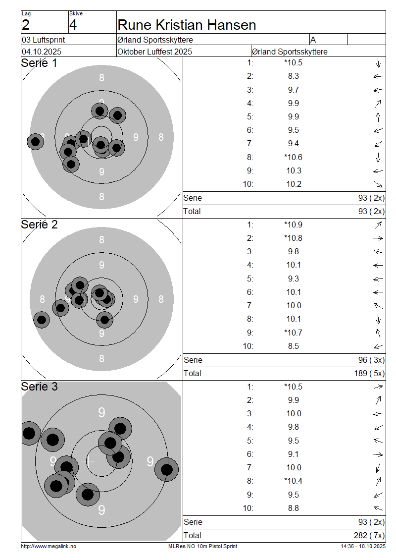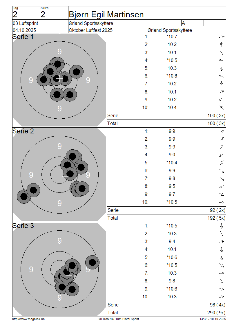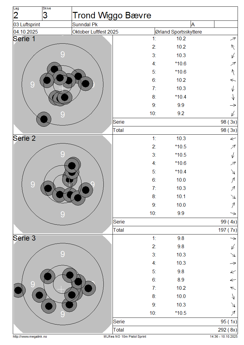 | 10 | 2 | ØIBERG Olav | Skjåk Pk | A | 97 | 94 | 96 | 287- 8x | |||||||||||||||||||||||||||||||||||||||||
