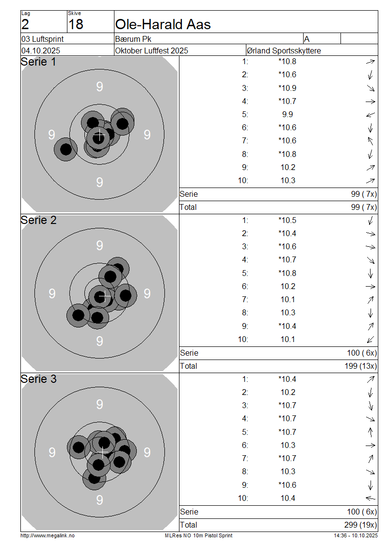 | 18 | 12 | AAS Ole-Harald | Bærum Pk | A | 99 | 100 | 100 | 299-19x | |||||||||||||||||||||||||||||||||||||||||