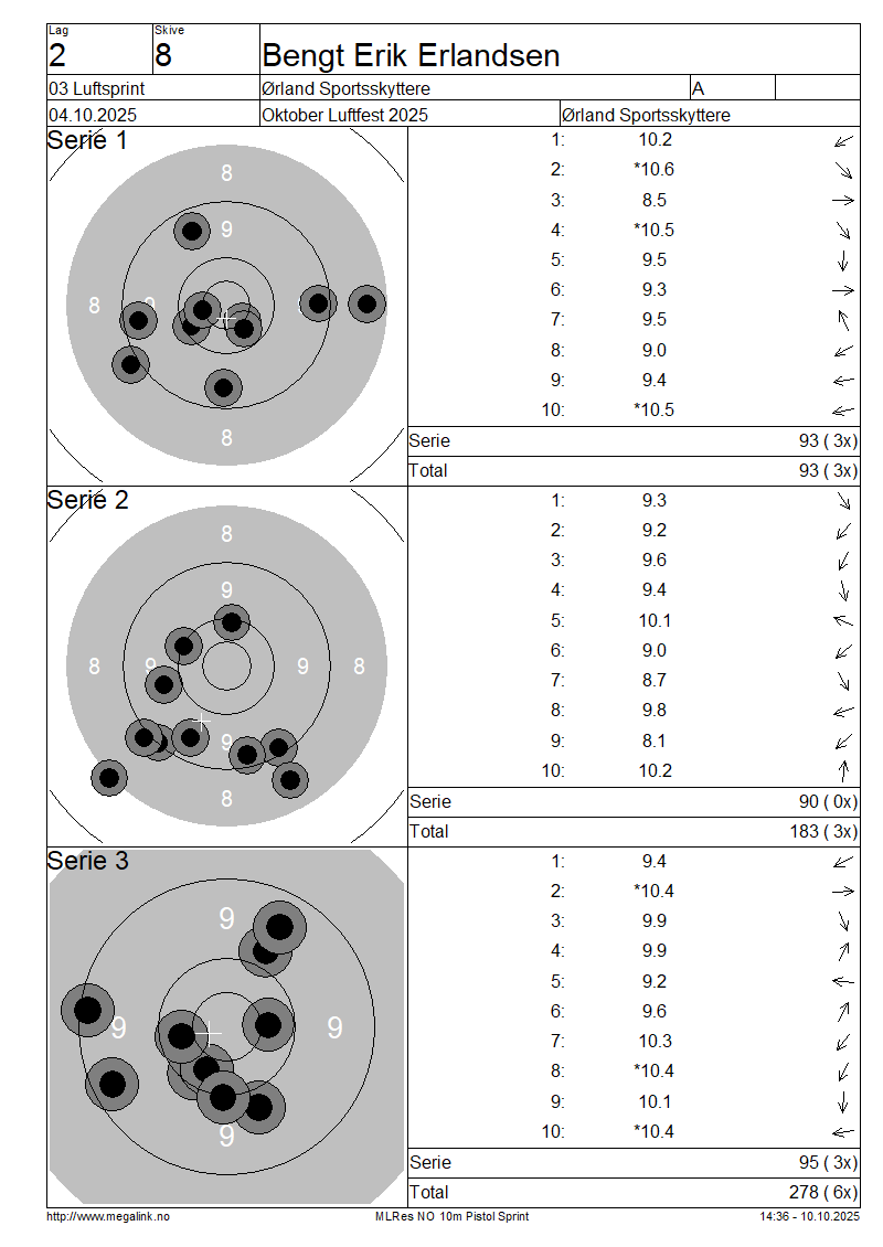 | 8 | 21 | ERLANDSEN Bengt Erik | Ørland Sportsskyttere | A | 93 | 90 | 95 | 278- 6x | |||||||||||||||||||||||||||||||||||||||||