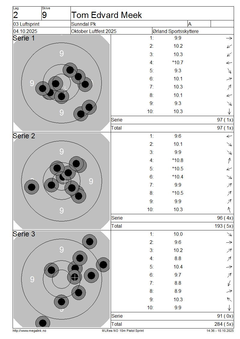 | 9 | 62 | MEEK Tom Edvard | Sunndal Pk | A | 97 | 96 | 91 | 284- 5x | |||||||||||||||||||||||||||||||||||||||||