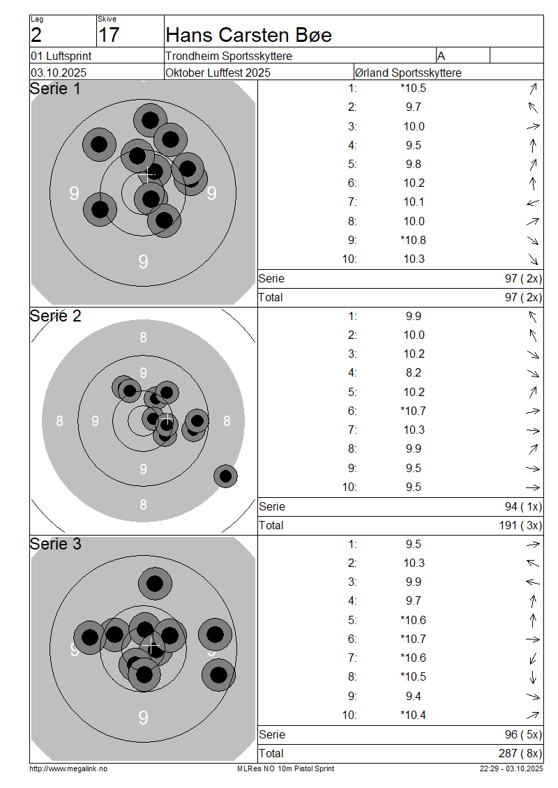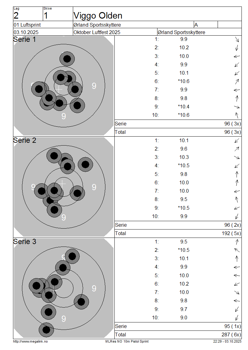 | 1 | 3 | OLDEN Viggo | Ørland Sportsskyttere | A | 96 | 96 | 95 | 287- 6x | |||||||||||||||||||||||||||||||||||||||||