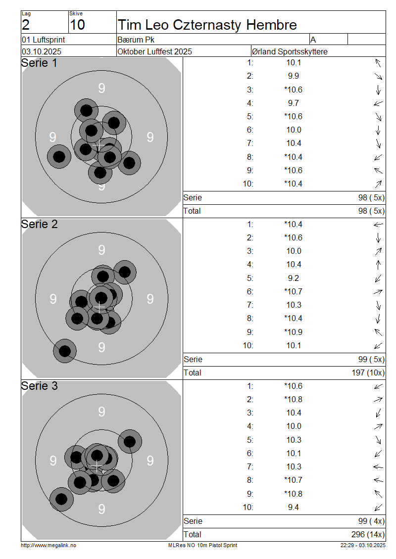 | 7 | 10 | HEMBRE Ludvik Czternasty | Bærum Pk | A | 97 | 97 | 99 | 293-14x | |||||||||||||||||||||||||||||||||||||||||