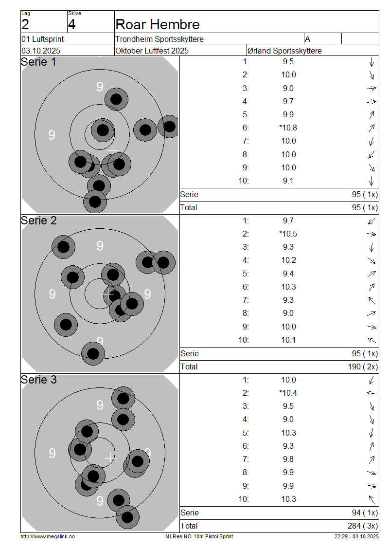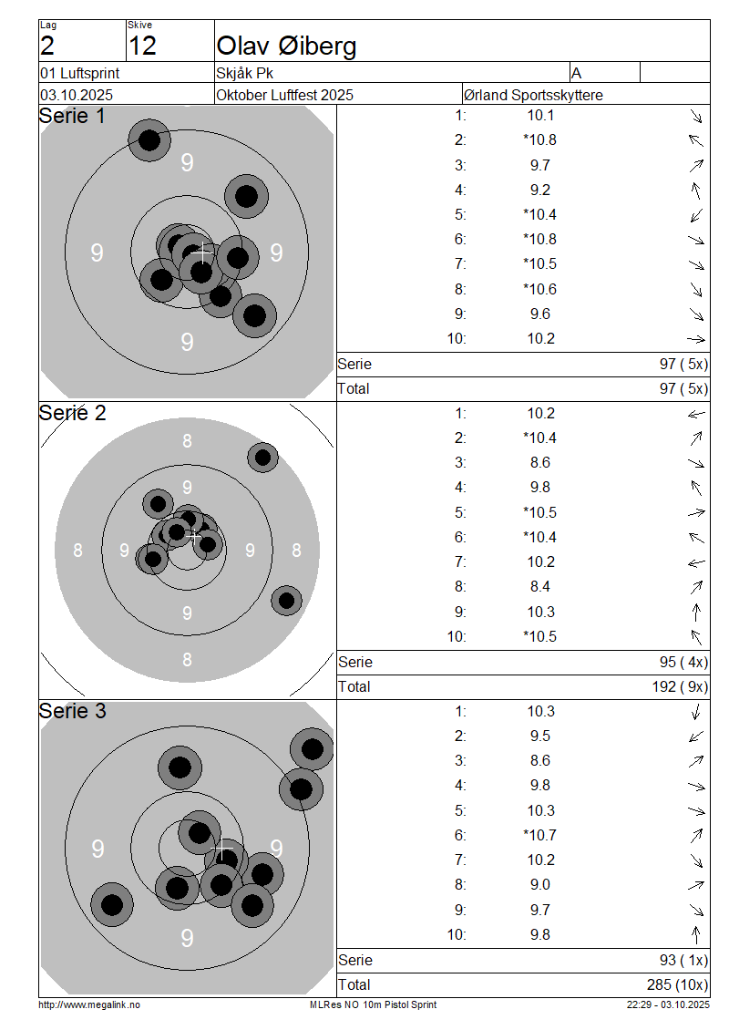 | 12 | 2 | ØIBERG Olav | Skjåk Pk | A | 97 | 95 | 93 | 285-10x | |||||||||||||||||||||||||||||||||||||||||