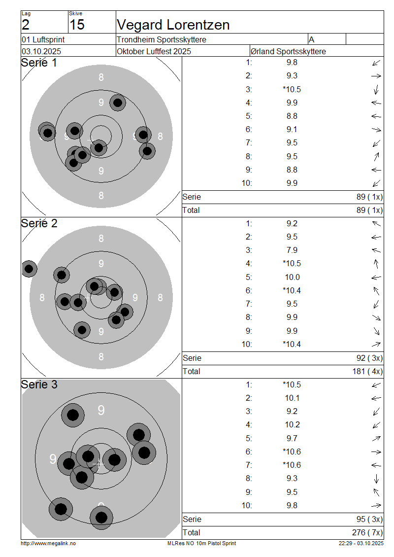 | 15 | 30 | LORENTZEN Vegard | Trondheim Sportsskyttere | A | 89 | 92 | 95 | 276- 7x | |||||||||||||||||||||||||||||||||||||||||