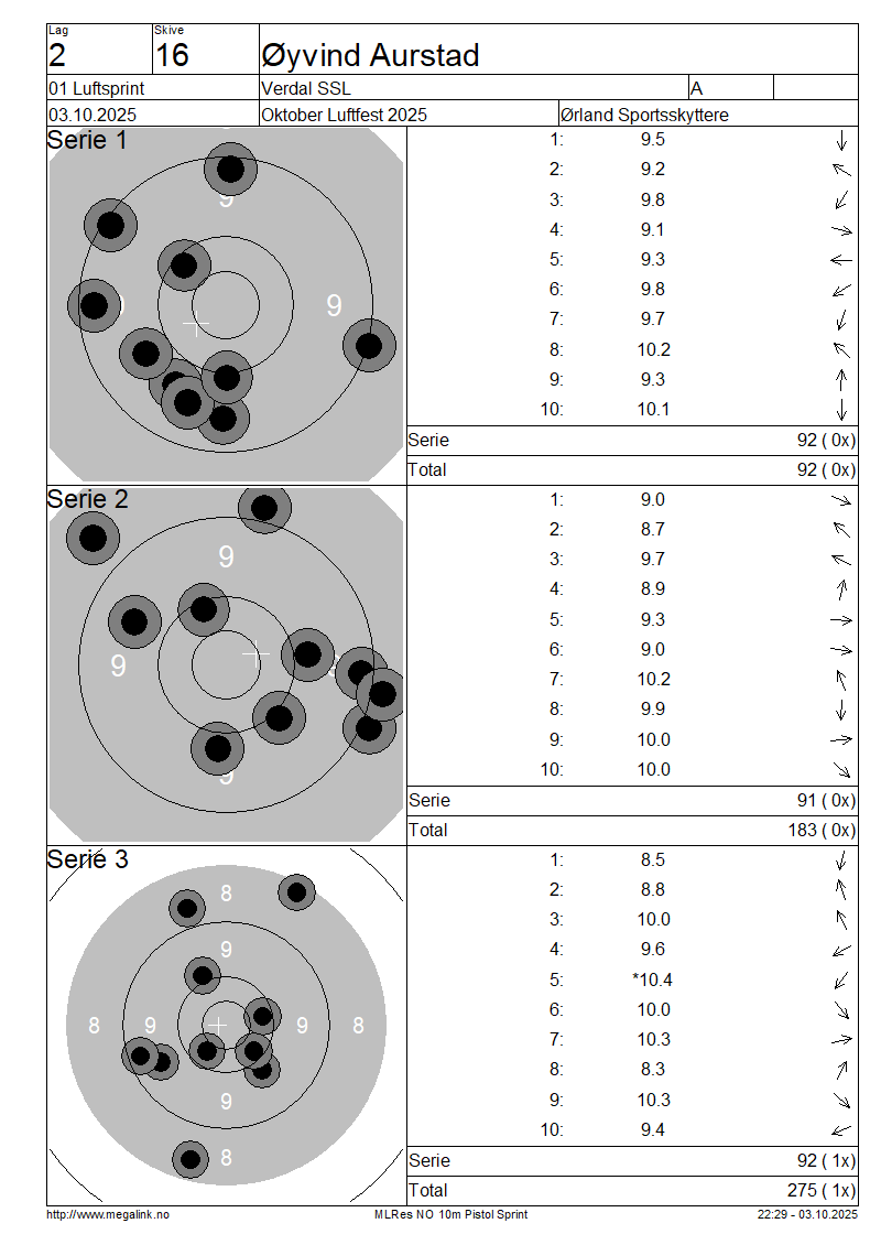 | 16 | 1 | AURSTAD Øyvind | Verdal SSL | A | 92 | 91 | 92 | 275- 1x | |||||||||||||||||||||||||||||||||||||||||