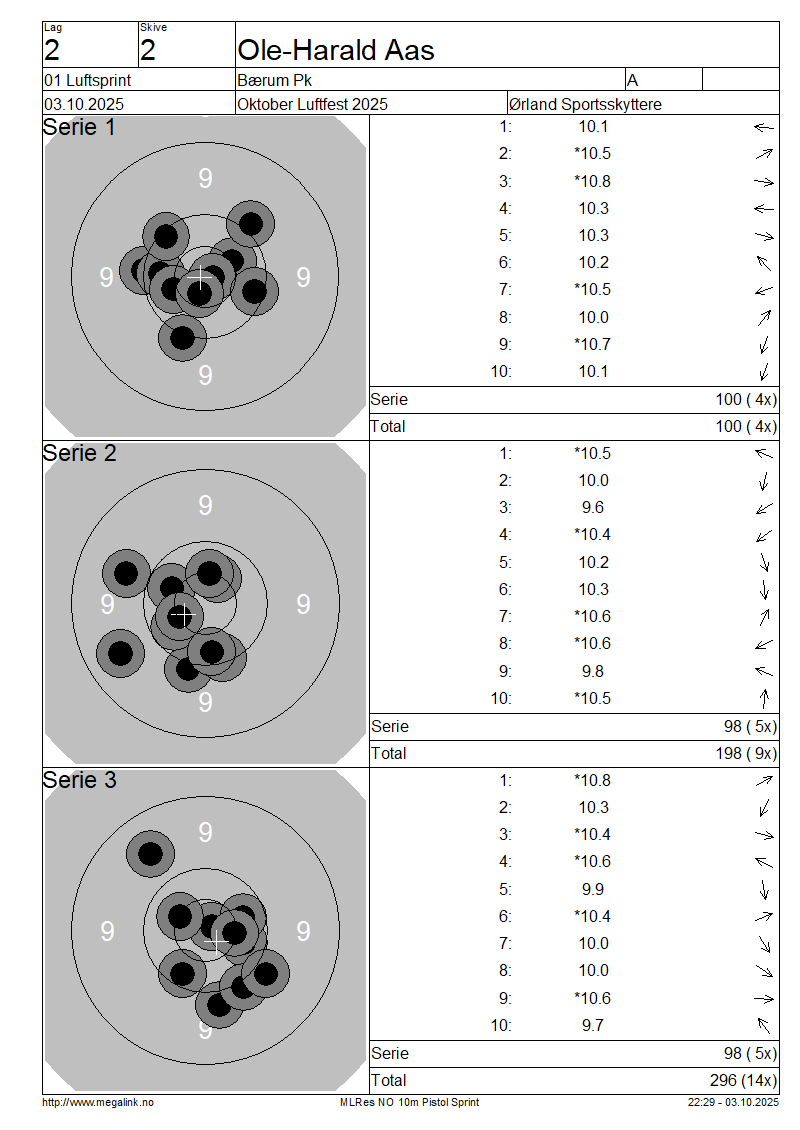 | 2 | 12 | AAS Ole-Harald | Bærum Pk | A | 100 | 98 | 98 | 296-14x | |||||||||||||||||||||||||||||||||||||||||