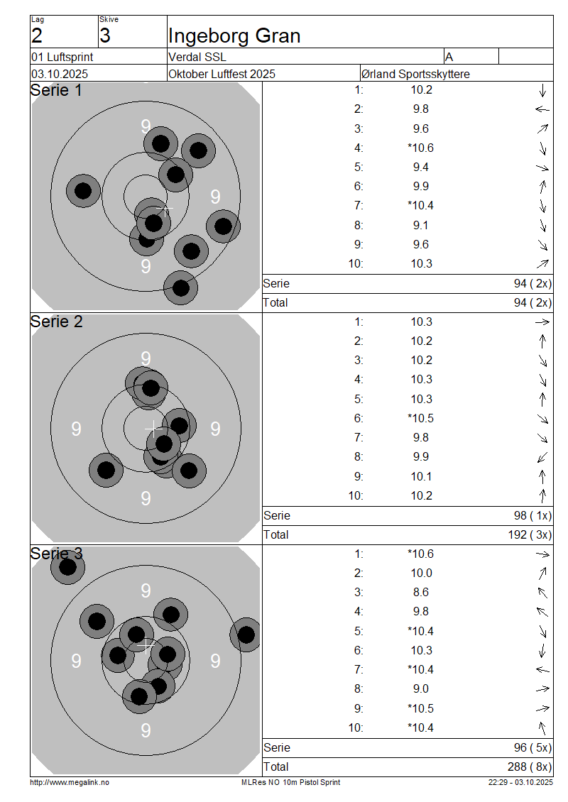 | 3 | 5 | GRAN Ingeborg | Verdal SSL | A | 94 | 98 | 96 | 288- 8x | |||||||||||||||||||||||||||||||||||||||||