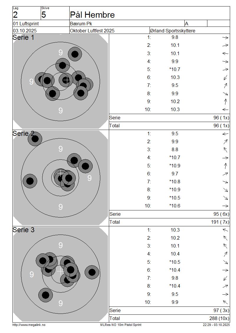 | 5 | 9 | HEMBRE Pål | Bærum Pk | A | 96 | 95 | 97 | 288-10x | |||||||||||||||||||||||||||||||||||||||||