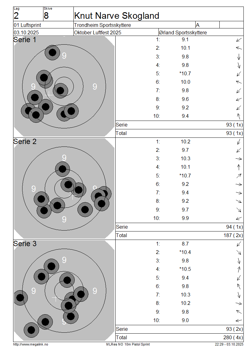 | 8 | 28 | SKOGLAND Knut Narve | Trondheim Sportsskyttere | A | 93 | 94 | 93 | 280- 4x | |||||||||||||||||||||||||||||||||||||||||
