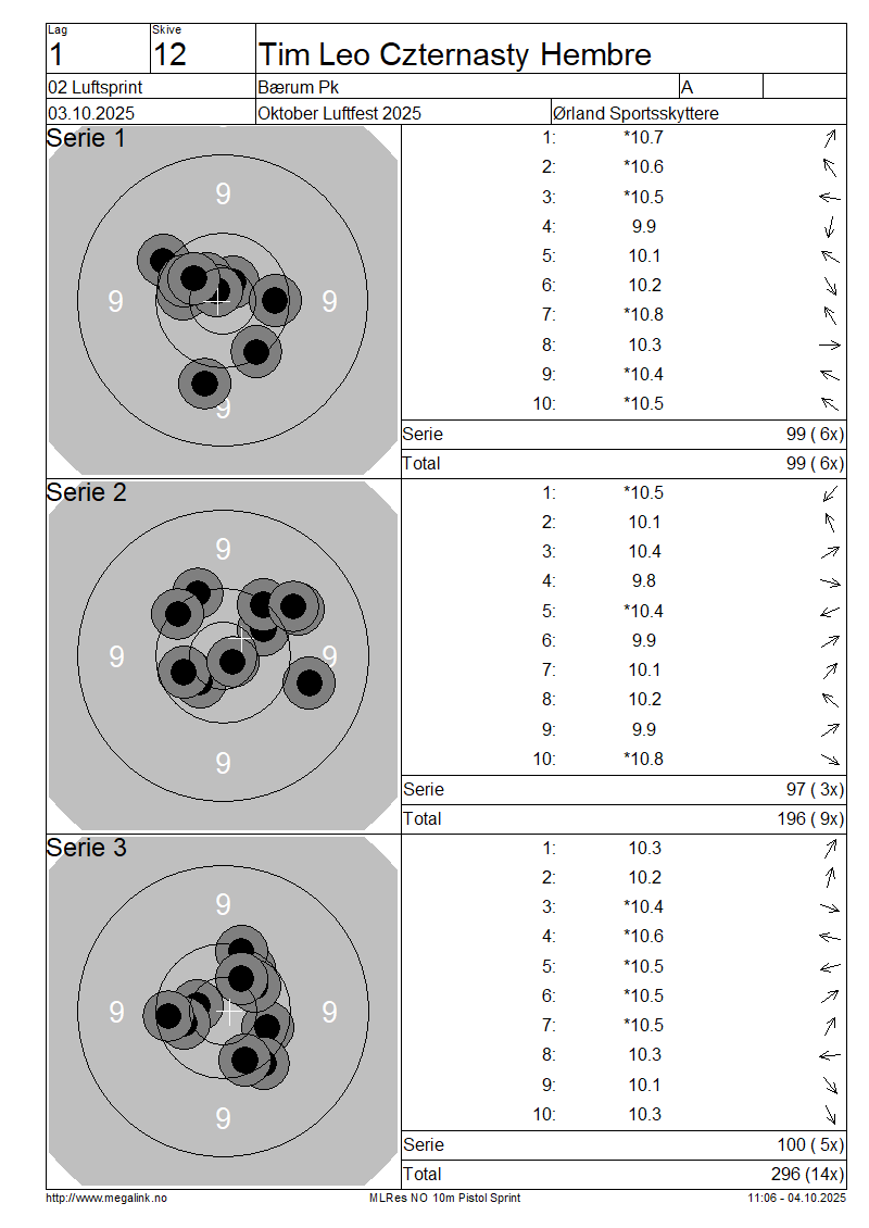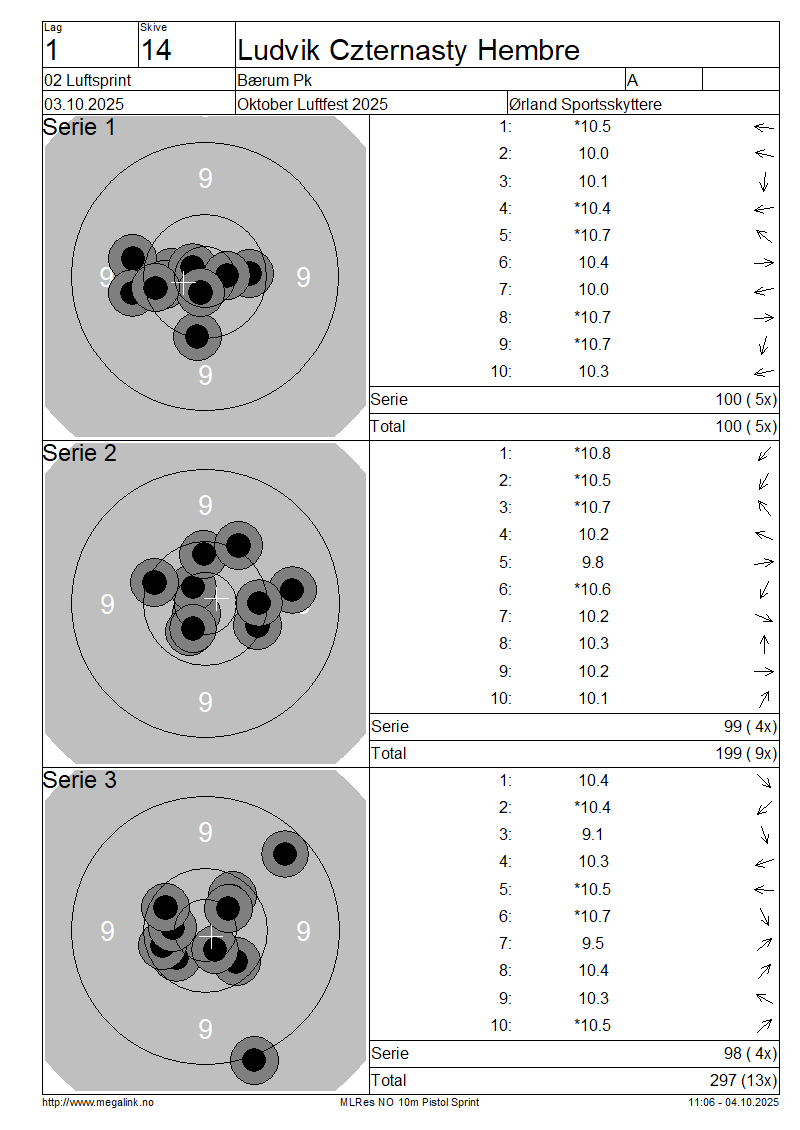 | 14 | 10 | HEMBRE Ludvik Czternasty | Bærum Pk | A | 100 | 99 | 98 | 297-13x | |||||||||||||||||||||||||||||||||||||||||