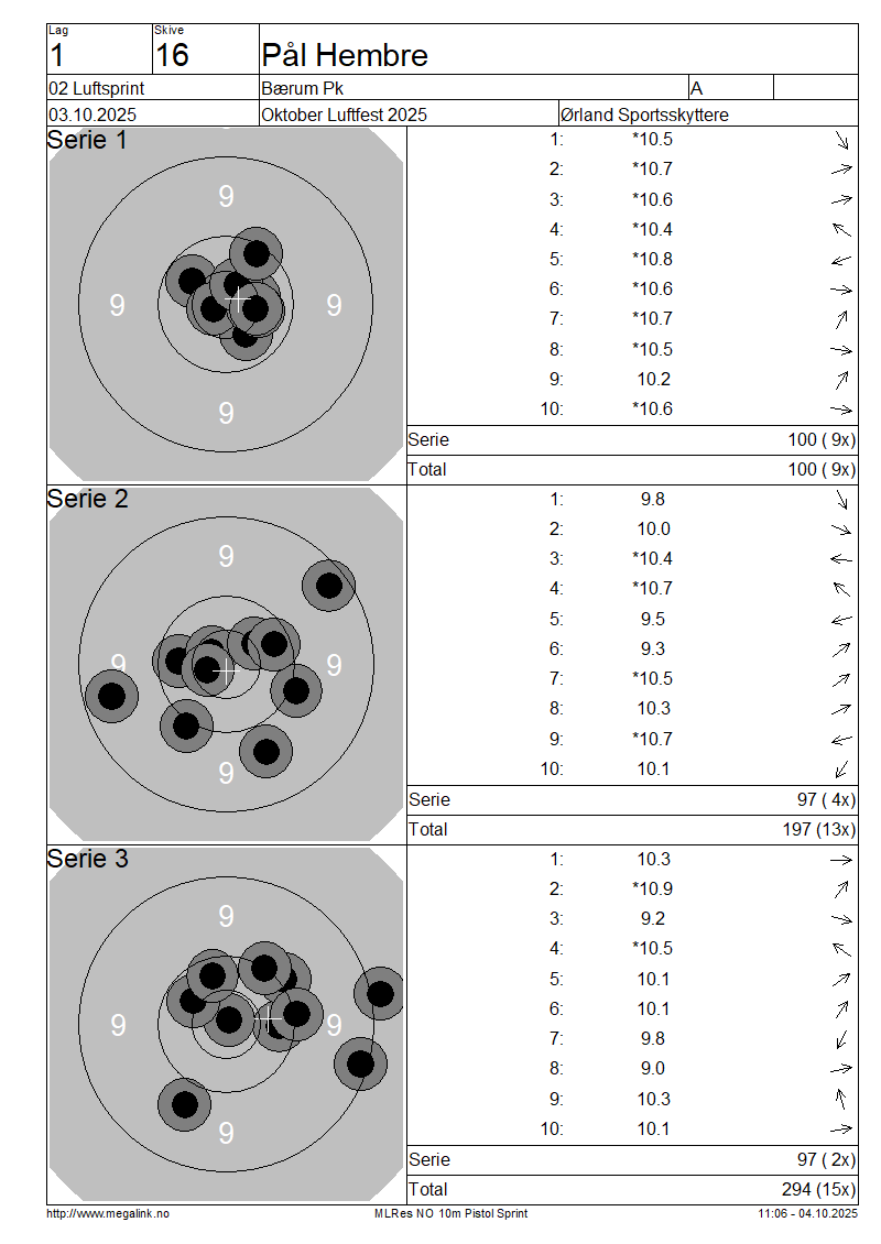 | 16 | 9 | HEMBRE Pål | Bærum Pk | A | 100 | 97 | 97 | 294-15x | |||||||||||||||||||||||||||||||||||||||||
