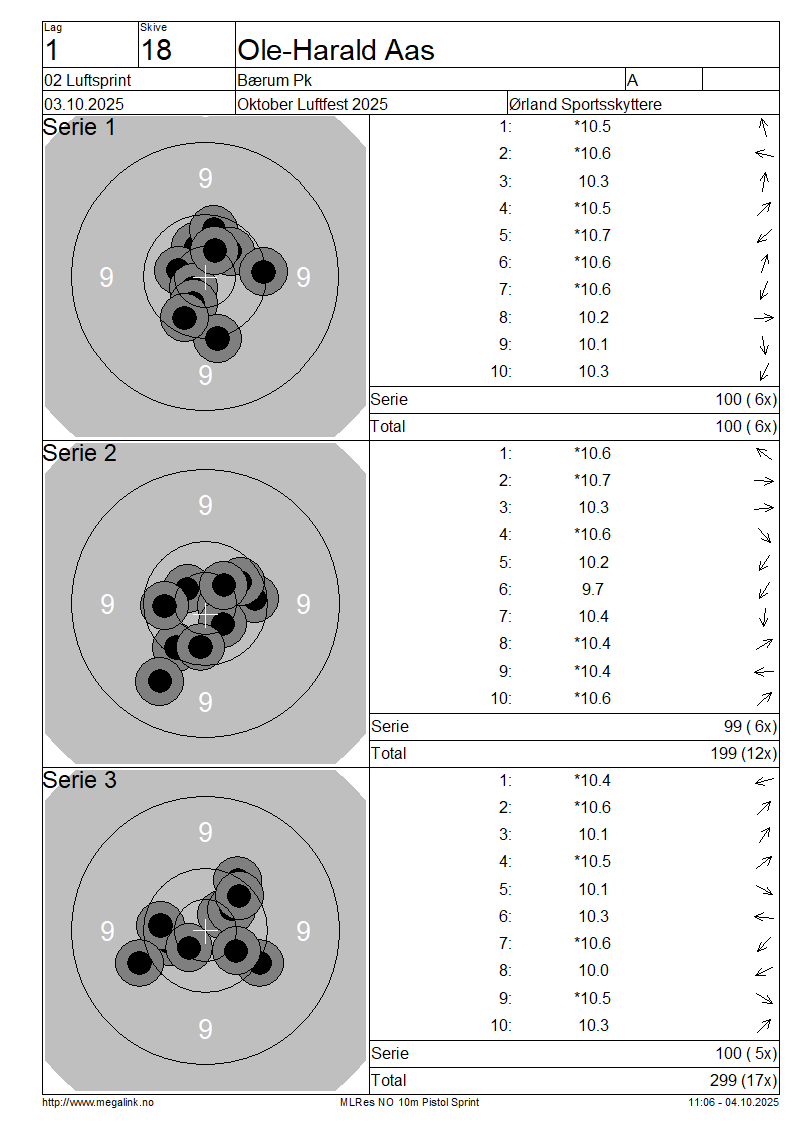 | 18 | 12 | AAS Ole-Harald | Bærum Pk | A | 100 | 99 | 100 | 299-17x | |||||||||||||||||||||||||||||||||||||||||