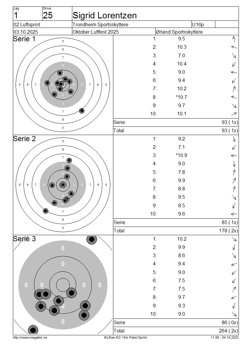 | 25 | 29 | LORENTZEN Sigrid | Trondheim Sportsskyttere | U16p | 93 | 85 | 86 | 264- 2x | |||||||||||||||||||||||||||||||||||||||||