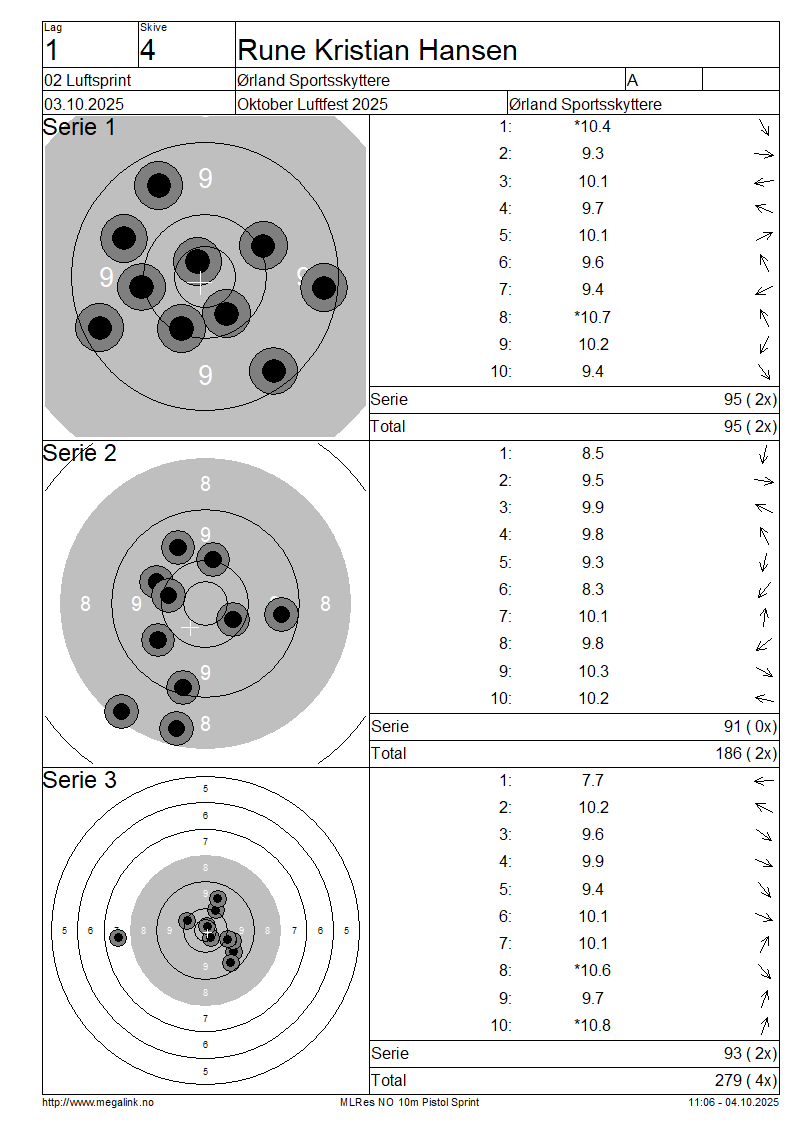 | 4 | 31 | HANSEN Rune Kristian | Ørland Sportsskyttere | A | 95 | 91 | 93 | 279- 4x | |||||||||||||||||||||||||||||||||||||||||