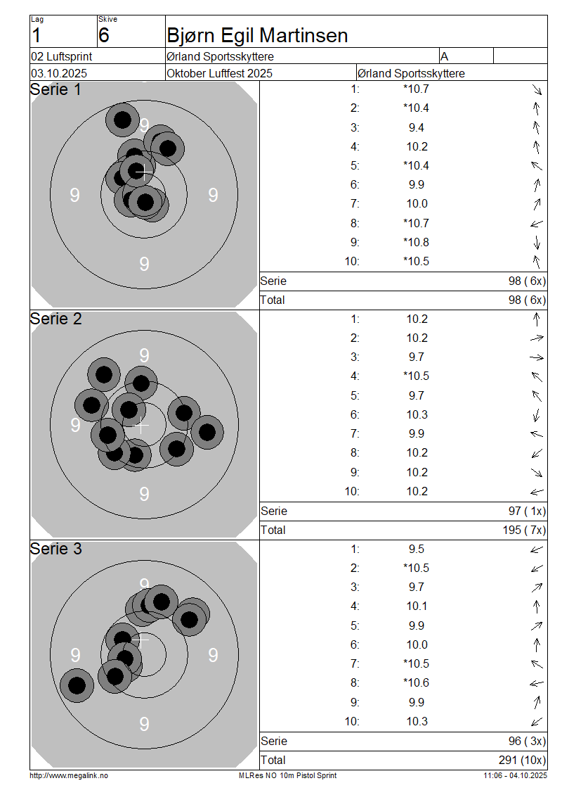 | 6 | 20 | MARTINSEN Bjørn Egil | Ørland Sportsskyttere | A | 98 | 97 | 96 | 291-10x | |||||||||||||||||||||||||||||||||||||||||