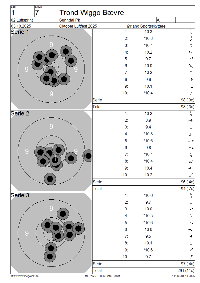 | 7 | 15 | BÆVRE Trond Wiggo | Sunndal Pk | A | 98 | 96 | 97 | 291-11x | |||||||||||||||||||||||||||||||||||||||||