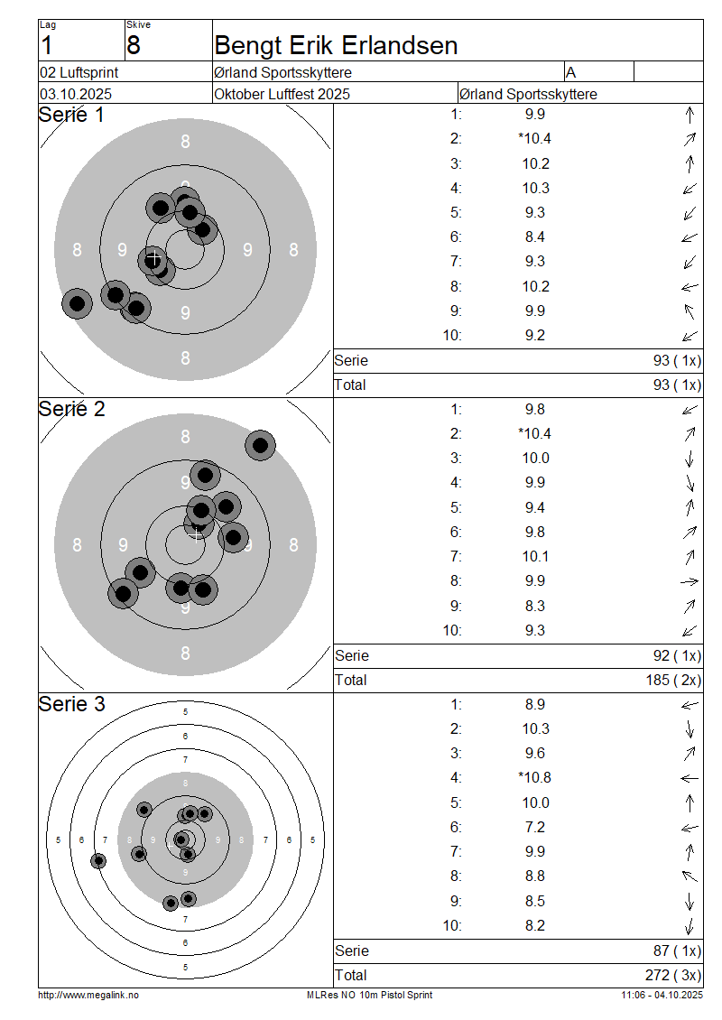 | 8 | 21 | ERLANDSEN Bengt Erik | Ørland Sportsskyttere | A | 93 | 92 | 87 | 272- 3x | |||||||||||||||||||||||||||||||||||||||||