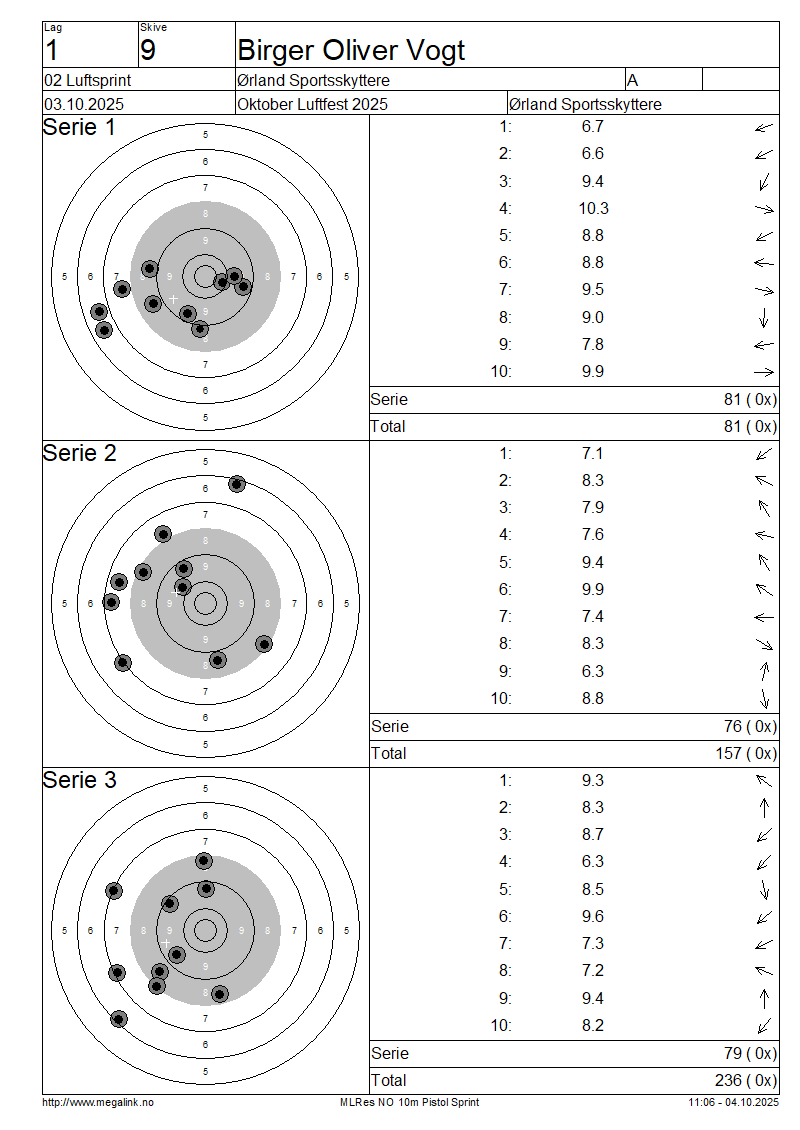| 9 | 22 | VOGT Birger Oliver | Ørland Sportsskyttere | A | 81 | 76 | 79 | 236- 0x | |||||||||||||||||||||||||||||||||||||||||